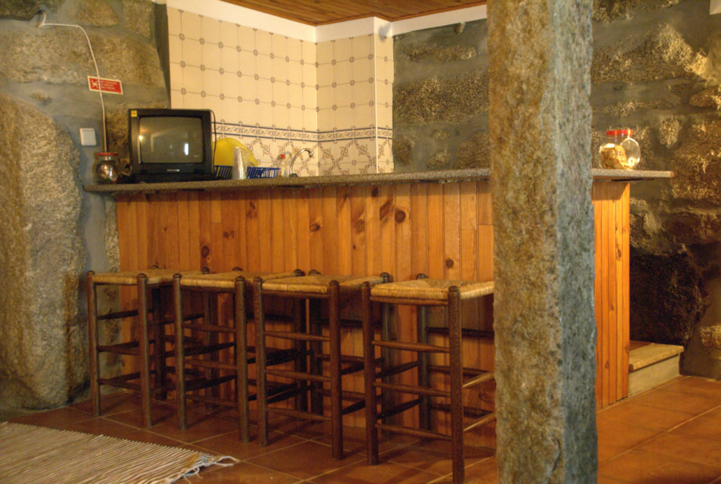A casa é composta pelo rés-do-chão e primeiro andar. O rés-do-chão manteve a traça original com a pedra a descoberto. Neste andar localiza-se um salão com lareira de pedra e um bar. Este salão dá para um outro espaço de ligação ao andar de cima, a uma pequena casa de banho e à rua onde se pode desfrutar de uma zona coberta que serve de apoio a ricos petiscos temperados com o calor e aroma que só a lenha queimada no grelhador podem dar. Existe ainda uma grande pia antiga que serve de mesa e um banco de madeira que apoia grandes preguiças…