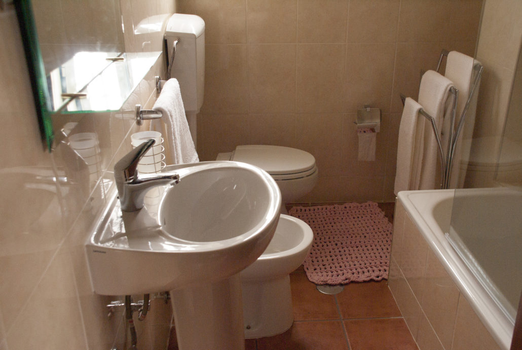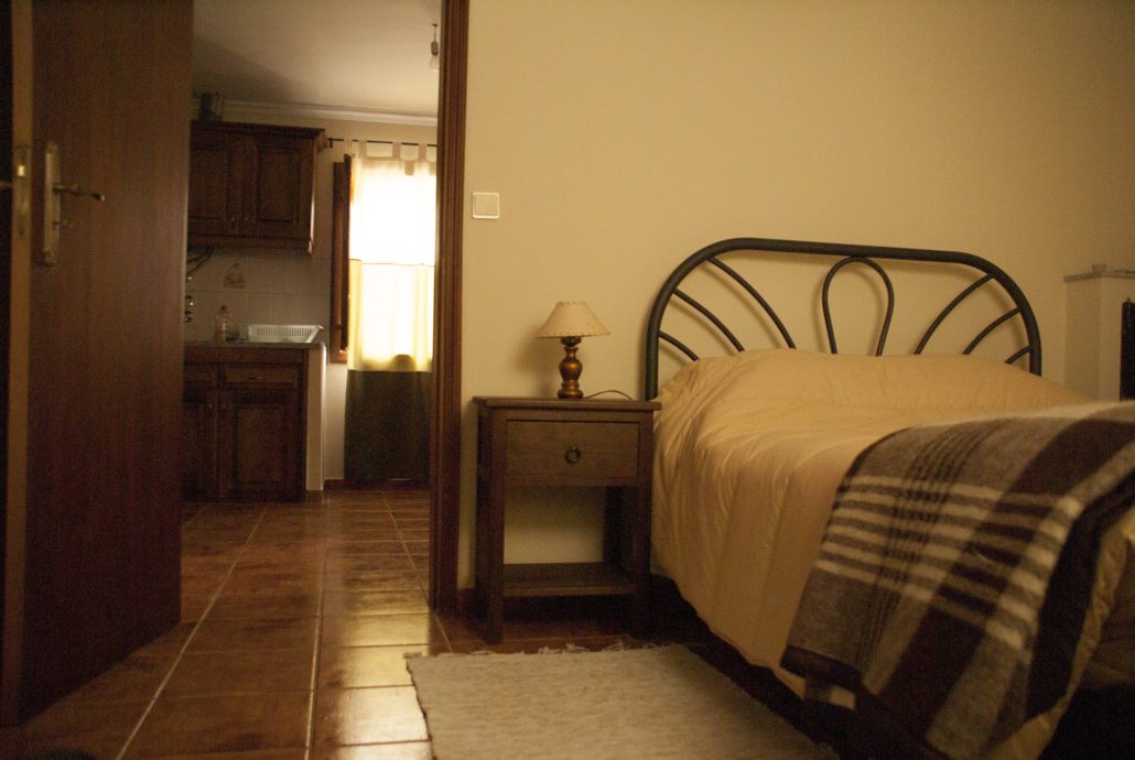 No primeiro andar situam-se três quartos, sendo dois deles equipados com camas de casal e outro com duas camas de solteiro com gavetões que escondem camas extras. Este é o quarto preferido das crianças que o elegem como reino da brincadeira que acaba por se arrastar noite dentro. Tem duas casas de banho, uma delas com chuveiro e outra com banheira. Há ainda uma cozinha equipada com o essencial para preparar refeições. É aqui que se situa uma lareira equipada com um recuperador de calor que aquece as divisões deste andar. Quanto a equipamentos eléctricos, a casa possui fogão e microondas, dois frigoríficos e duas televisões divididos pelos dois andares.